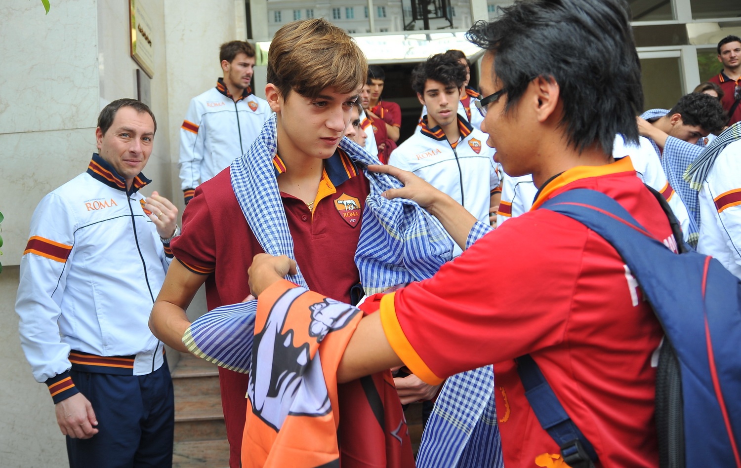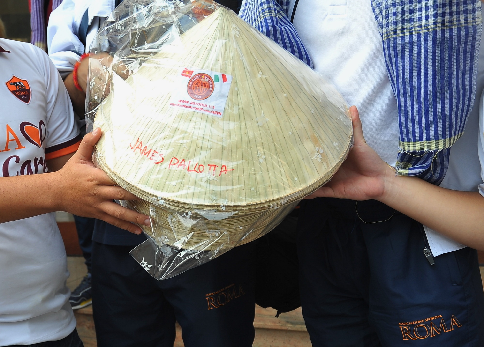| 20 chiếc khăn rằn và nón lá được tặng cho U19 AS Roma. |