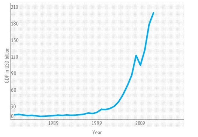 Nhờ sản lượng đầu ổn định và sản lượng khí gas cao, GDP của Qatar tăng mạnh trong 15 năm qua. |
