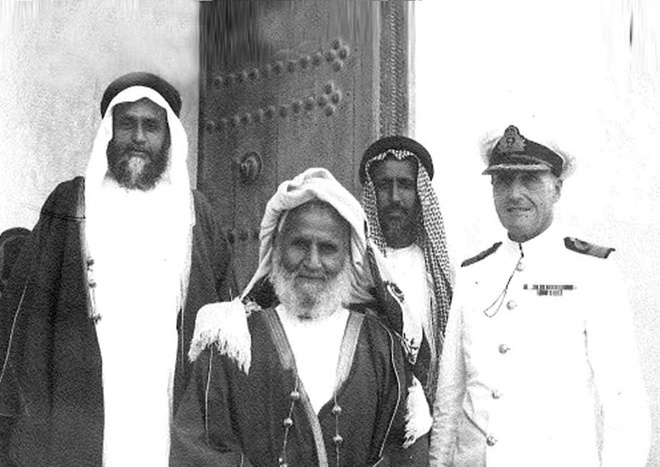 Từ đầu thế kỷ 20, Qatar nằm dưới sự trị vì của gia đình Al-Thanib khi nước này trở thành thuộc địa của Anh. Ngày 17/7/1913, Shaikh Abdullah Bin Qassim Al-Thani (đứng giữa,bên trái) lên nắm quyền trị vì Qatar. |