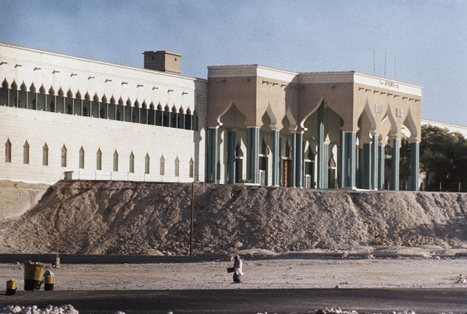 Ngày 22/2/1972, Khalifa ibn Hamad lật đổ cha mình - Emir Ahmad ibn Ali - khi ông này đang đi săn tại Iran, và lên nắm quyền trị vì. Khalifa ibn Hamad ngay lập tức cắt giảm chi tiêu hoàng gia và tăng ngân sách dành cho các chương trình xã hội, nhà ở, y tế, giáo dục, hưu trí. Trong ảnh là cung điện hoàng gia Amiri Diwan vào năm 1971, khi đó còn chưa được xây xong. |