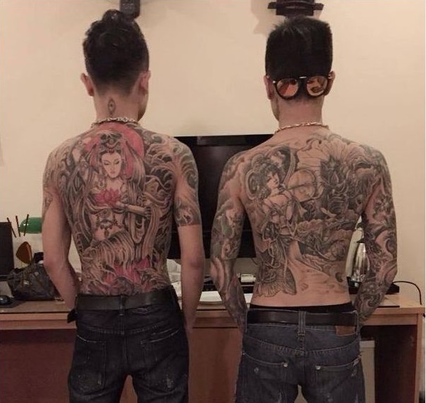 Ảnh chụp sau lưng của 2 chàng trai gây chú ý cộng đồng mạng bởi các hình xăm lớn, kín lưng, nhiều họa tiết cầu kì. Kèm theo tiêu đề với hình ảnh khiến người xem tò mò, muốn biết ý nghĩa đằng sau 2 hình xăm này.