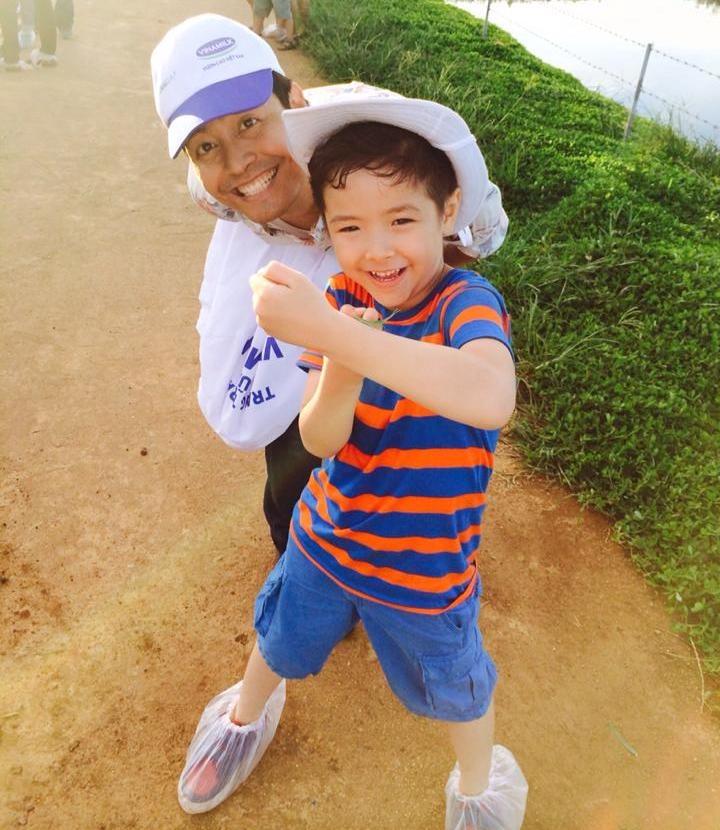 | Cậu bé hồn nhiên đùa nghịch cùng MC Phan Anh trong một chuyến đi trải nghiệm. |