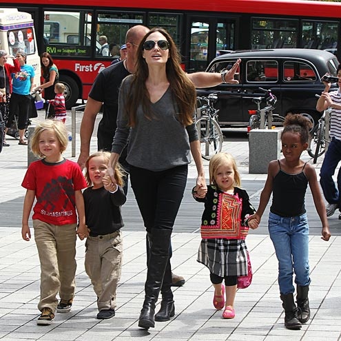 | Angelina Jolie dẫn 4 đứa con Shiloh, Knox, Vivienne và Zahara dạo chơi trên đường phố London – Anh. Đây là địa điểm quen thuộc ở Châu Âu mà minh tinh thường ghé tới để quay phim lẫn quảng bá. |