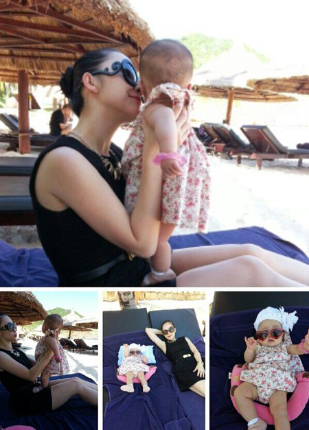 | "Ngọc nữ" của làng múa - Linh Nga - cũng tranh thủ đưa con gái đầu lòng đi biển. Hai mẹ con vui vẻ chơi đùa, trò chuyện và tắm nắng trên bãi cát. |
