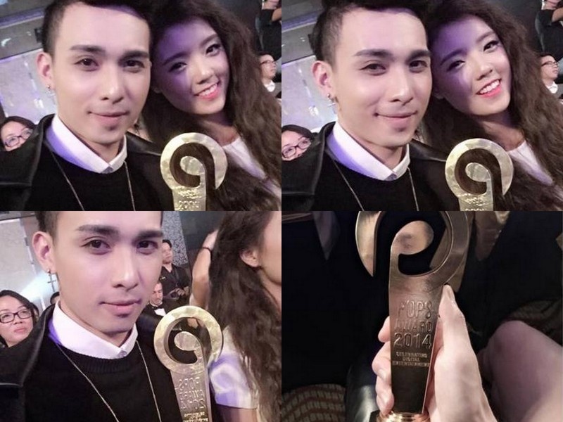 | Trưởng nhóm BB Trần nhận món quà danh dự từ Pops Awards 2014. |