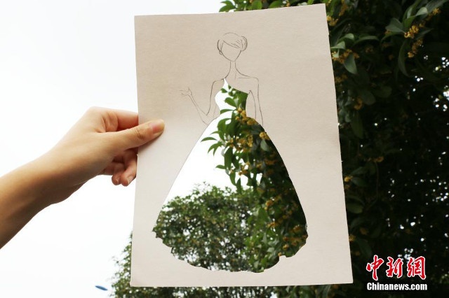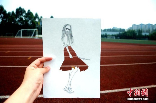 Tác giả của loạt tác phẩm này là 4 sinh viên năm 2, Đại học Tứ Xuyên. Lấy cảm hứng từ bộ sưu tập của nghệ sĩ Shamekhbluwi, các cô gái đã vẽ mẫu váy, áo thời trang trên giấy A4, cắt một phần và ghép với khung cảnh tại trường học.. |