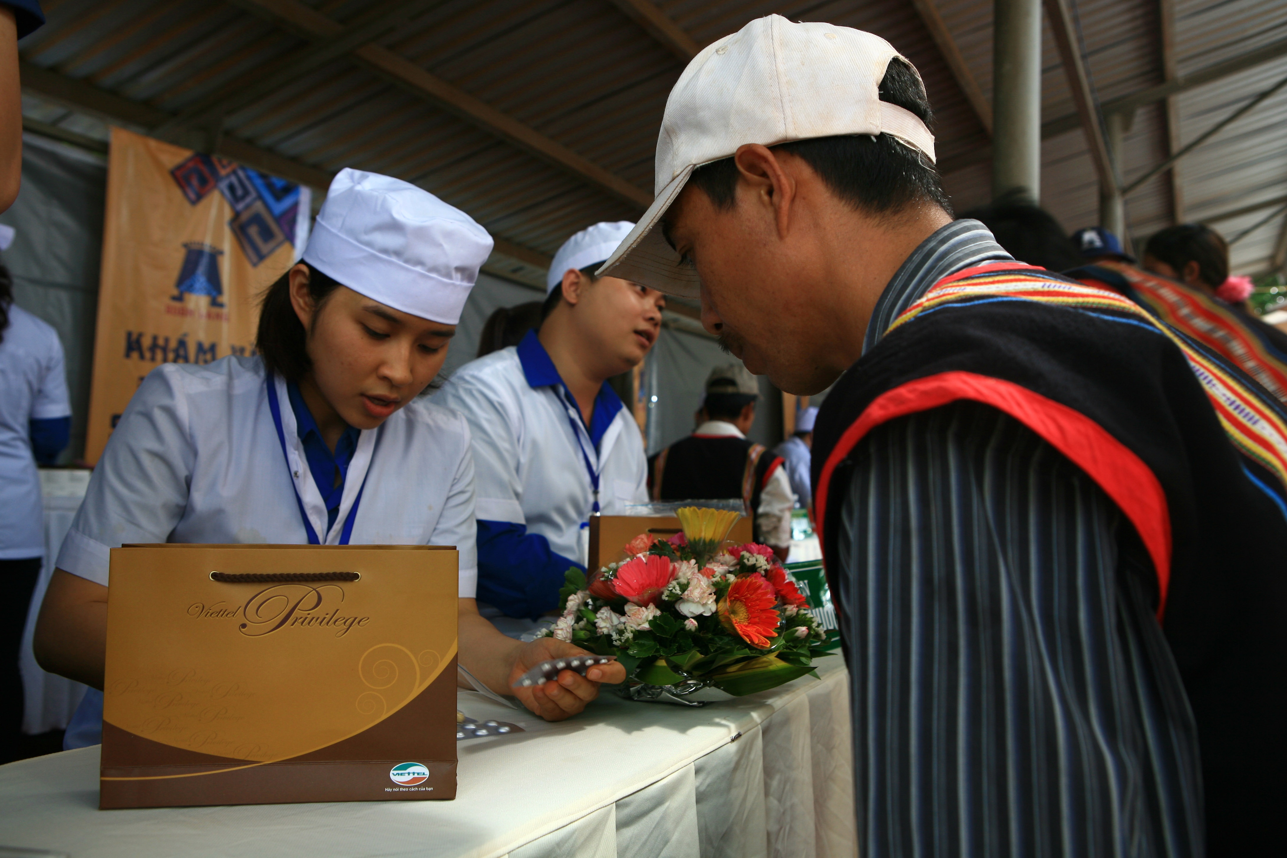 Cũng trong dịp này, Viettel đã phối hợp Bệnh viện Đa khoa TP Buôn Ma Thuột tổ chức chương trình khám bệnh và cấp phát thuốc miễn phí cho hơn 200 già làng, trưởng bản và 100 đồng bào dân tộc thiểu số. Bác Y Đach, 68 tuổi ở xã Đắk Môn, huyện Đắk Song, tỉnh Đắk Nông cho biết, đây là lần đầu tiên bác được đi khám sức khỏe. Các bác sĩ thông báo kết quả cho thấy bác bị suy nhược cơ thể và đề nghị bác cần nghỉ ngơi và cần tuân thủ chế độ điều trị nghiêm túc. Cầm trên tay túi thuốc được phát miễn phí, bác xúc động cho biết sẽ không chủ quan với sức khỏe bản thân nữa mà sẽ thường xuyên đi khám bệnh để phát hiện và điều trị kịp thời.