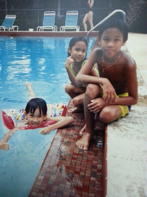 | Cuối năm 2013, danh hài Hoài Linh và Dương Triệu Vũ khiến khán giả bất ngờ khi đăng tải những bức ảnh hội ngộ của gia đình anh tại Mỹ. |