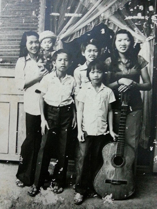 | Hoài Linh sinh ngày 18 tháng 12 năm 1969 tại Cam Ranh trong một gia đình có tất cả 6 người con (ba trai, ba gái). Anh là con thứ ba và là con trai trưởng trong gia đình. Cha mẹ anh quê ở Đại Lộc, Quảng Nam. Trong ảnh, Dương Triệu Vũ là người đang được người chị thứ 3 bồng trên tay, còn anh trai Hoài Linh là người đứng ở vị trí thứ 2 (hàng sau, từ phải sang). So với bây giờ, danh hài Hoài Linh có ngoại hình không khác mấy. |