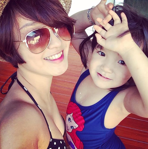 | Hot girl Mi Vân một thời giờ cũng là bà mẹ đơn thân. Bé Bào Ngư có vẻ ngoài xinh xắn rất giống mẹ. |