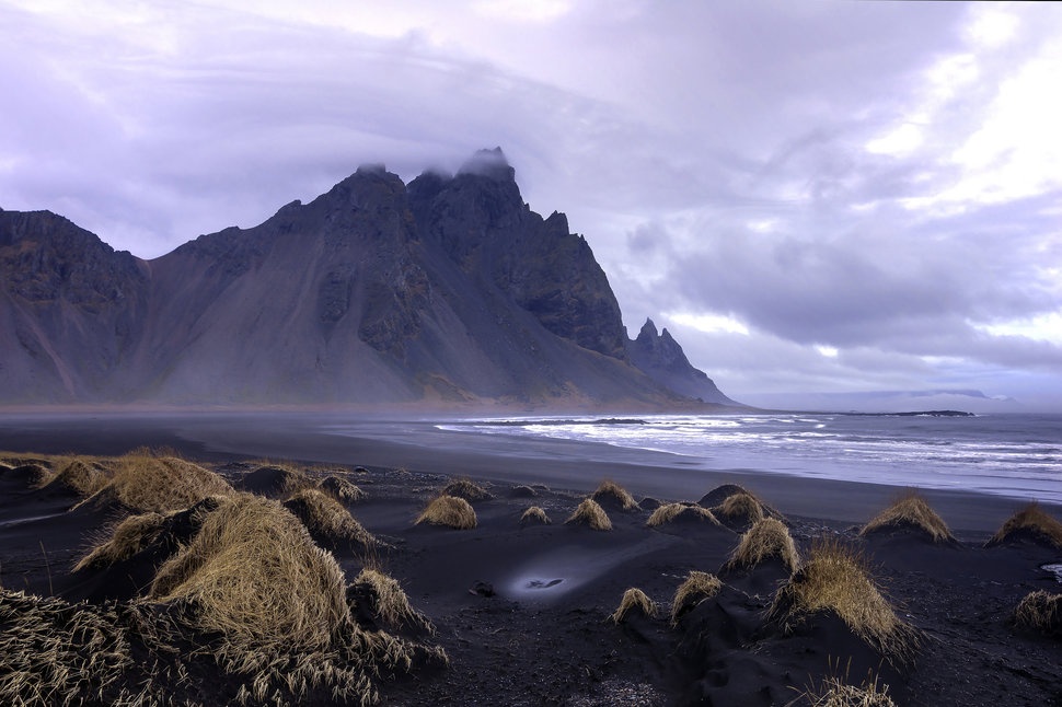 Bãi biển Stokksnes, Iceland: Bờ biển gập ghềnh cạnh núi Vestrahorn là nơi tuyệt vời để đắm mình trong ánh hoàng hôn.