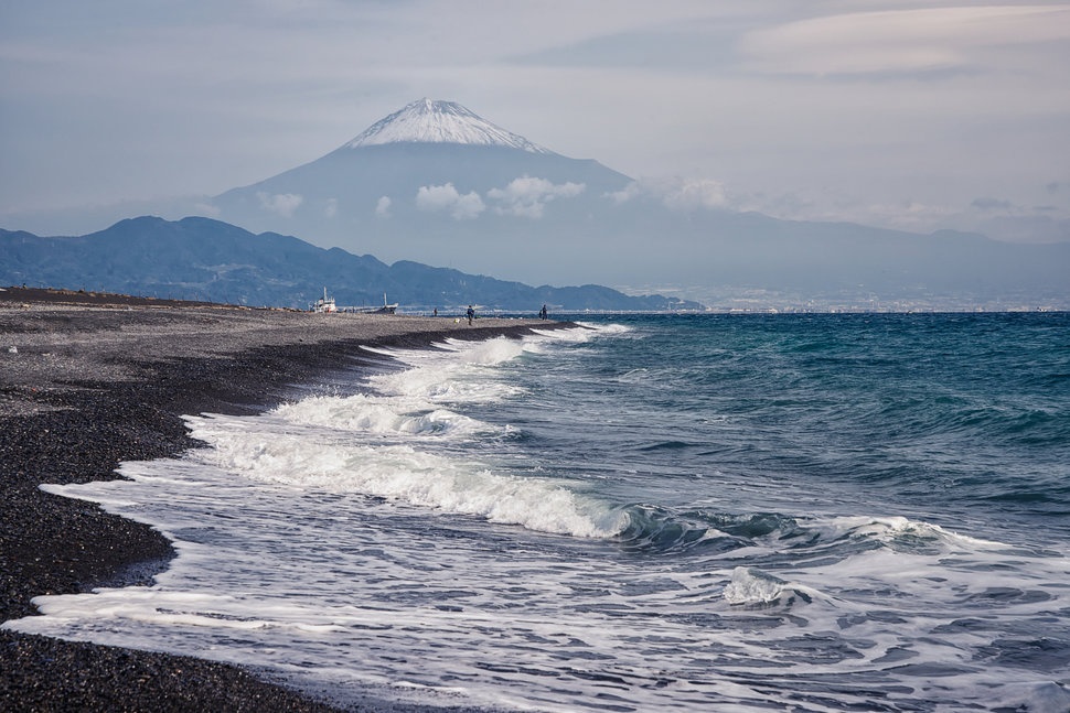 Miho no Matsubara, Shizuoka, Nhật Bản: Được bao quanh bởi hàng nghìn cây thông cổ thụ, bãi biển cát đen dài hơn 6 km này cho du khách nhìn toàn cảnh núi Phú Sĩ. Từng là bãi cát trắng nơi tắm của các nàng tiên trong truyện cổ, Miho no Matsubara chuyển thành màu đen khi việc xây dựng đường tàu gần đó chạm phải mạch cát đá nham thạch dưới lòng đất.