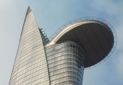 | Tại TP.HCM, tòa tháp Bitexco (quận 1, TP.HCM) cũng xây dựng một bãi đáp trực thăng độc đáo. Công trình được nhận diện như một bông hoa sen hé nở với nhụy hoa là sân trực thăng phía trên đỉnh của tòa nhà. Bãi đáp này là sự kết hợp của trên 250 tấn kết cấu thép và hơn 4.000 bulông để liên kết (Ảnh: Bitexco.com). |