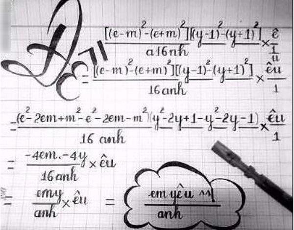 | Bằng sự kết hợp giữa toán học và tình yêu, bài toán rút gọn biểu thức đã khiến dân mạng thích thú bởi cho ra đáp số kỳ lạ: em yêu anh. |