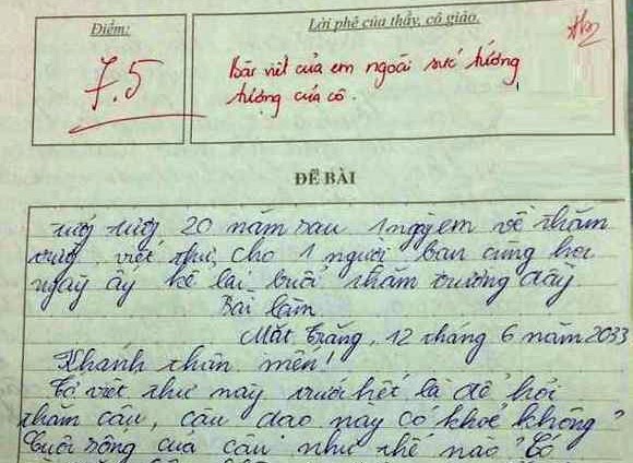 Cô giáo nhận xét: “Bài viết của em ngoài sức tưởng tượng của cô".