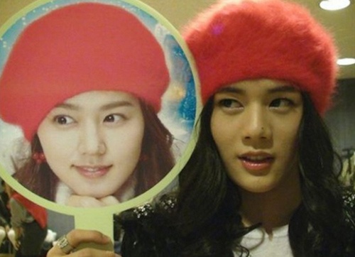 | Nam ca sĩ Dong Jun từng khiến người hâm mộ sốc khi có nhiều nét giống nữ diễn viên Han Ga In. Khi cải trang thành nữ, anh chàng trông càng giống hơn. |