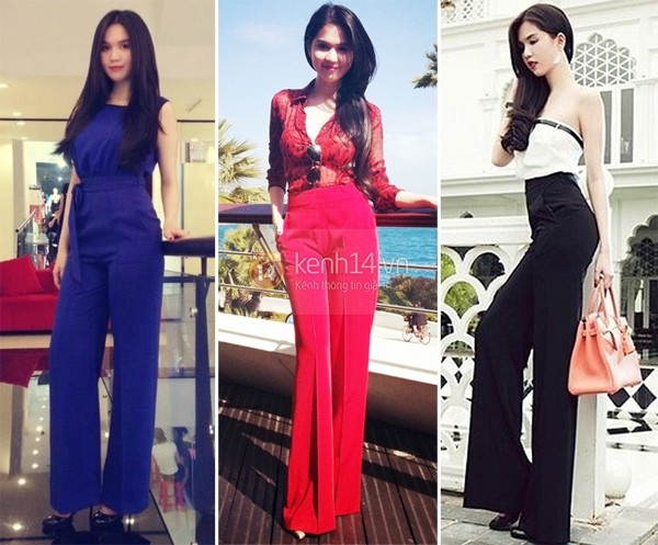 | Thường thi khi cùng chọn 1 mẫu trang phục, Thái Hà thường chọn màu sắc khác với Ngọc Trinh. Cả hai đều vô cùng yêu thích jumpsuit. |