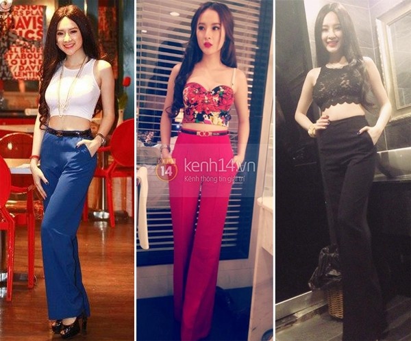 | Những chiếc quần suông màu sắc cơ bản mang lại vẻ đẹp chững chạc, thanh lịch cho Angela Phương Trinh... |
