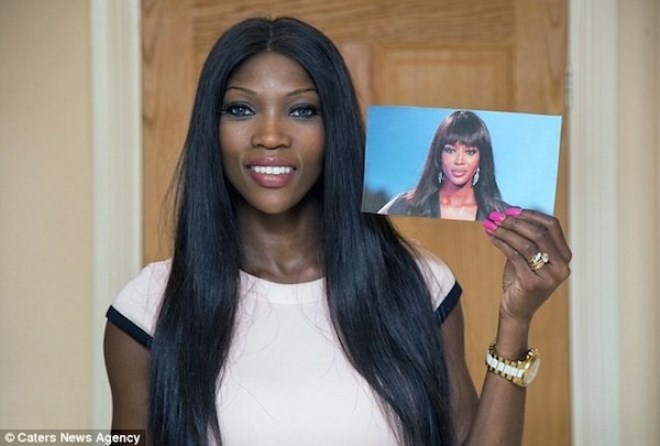 "Em gái" siêu mẫu Naomi Campbell: Một cô gái mới đây được nhiều người biết đến nhờ có khuôn mặt và vóc dáng giống với giám khảo chương trình truyền hình thực tế nổi tiếng thế giới - The Face. Theo Daily Mail, cô gái này có tên Lystra Adams. Do quá giống siêu mẫu Naomi Campbell nên cô luôn bị chặn lại, xin chữ ký mỗi khi ra đường. (Ảnh: Daily Mail)