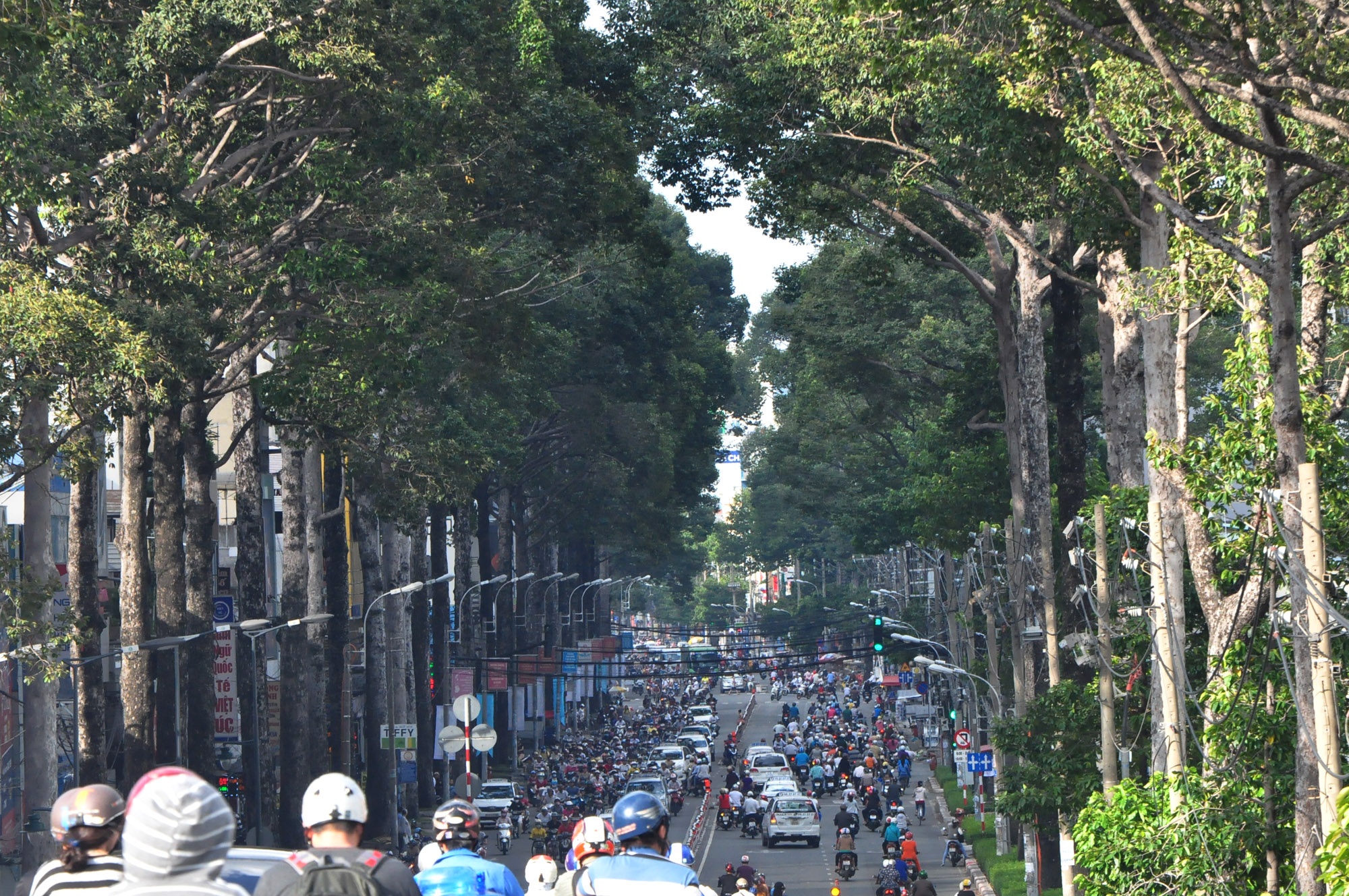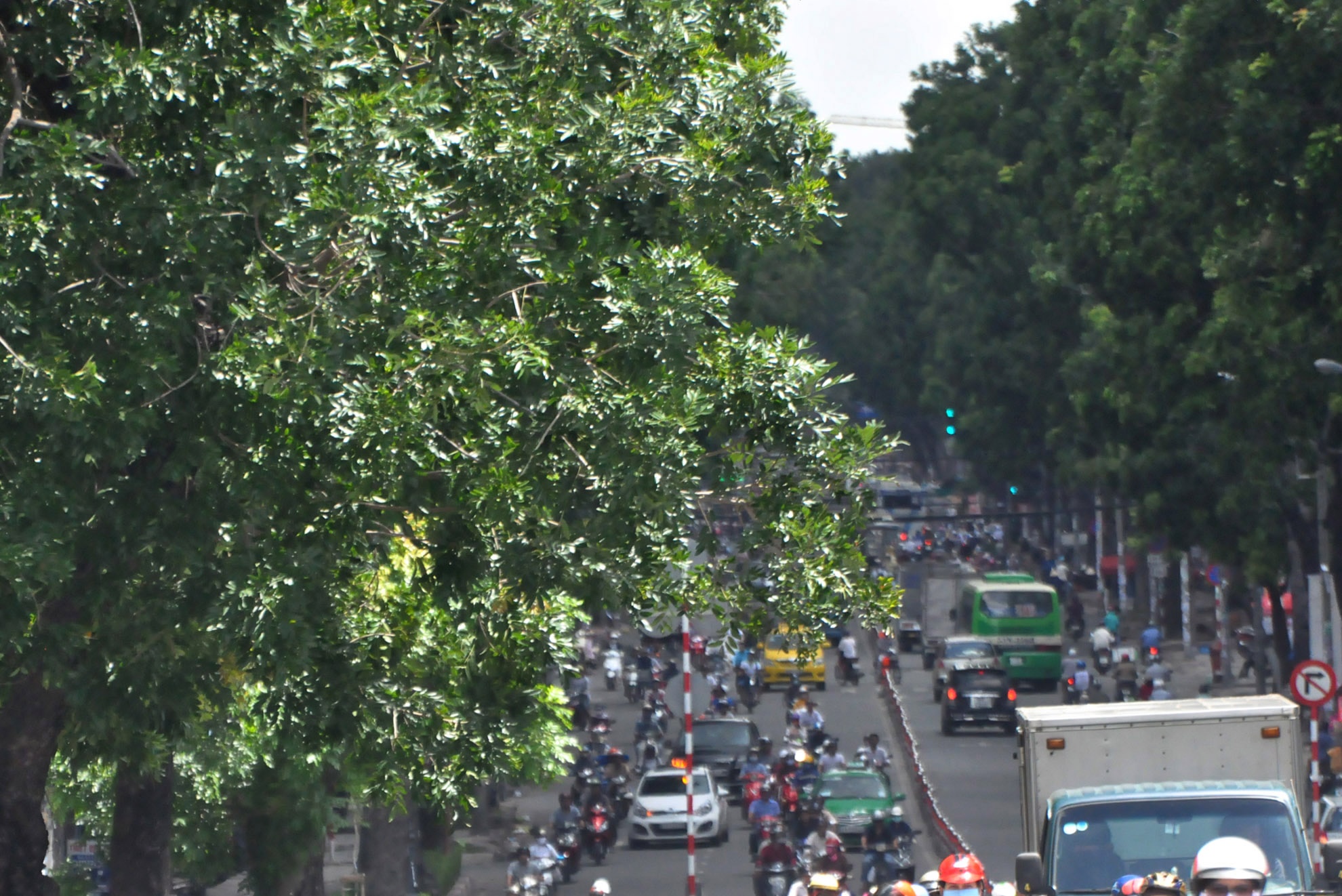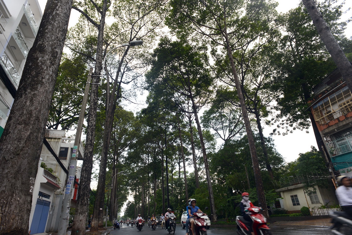 Với hơn 300 năm hình thành và phát triển, dù còn non trẻ so với Hà Nội, Huế, người Sài Gòn tự hào với không ít hàng cây trăm tuổi. Vì thế, khi phải đánh đổi chúng để mở rộng đường sá, xây dựng các công trình, không ít người bị "tổn thương". Trong ảnh: Hàng cây dầu thẳng tắp san sát nhau hai bên đường Nguyễn Tri Phương, quận 10.