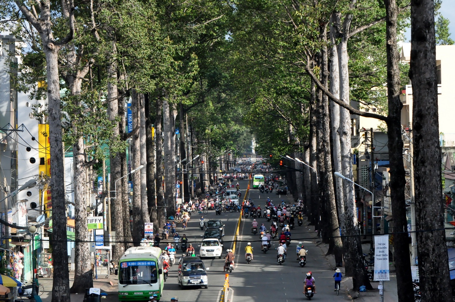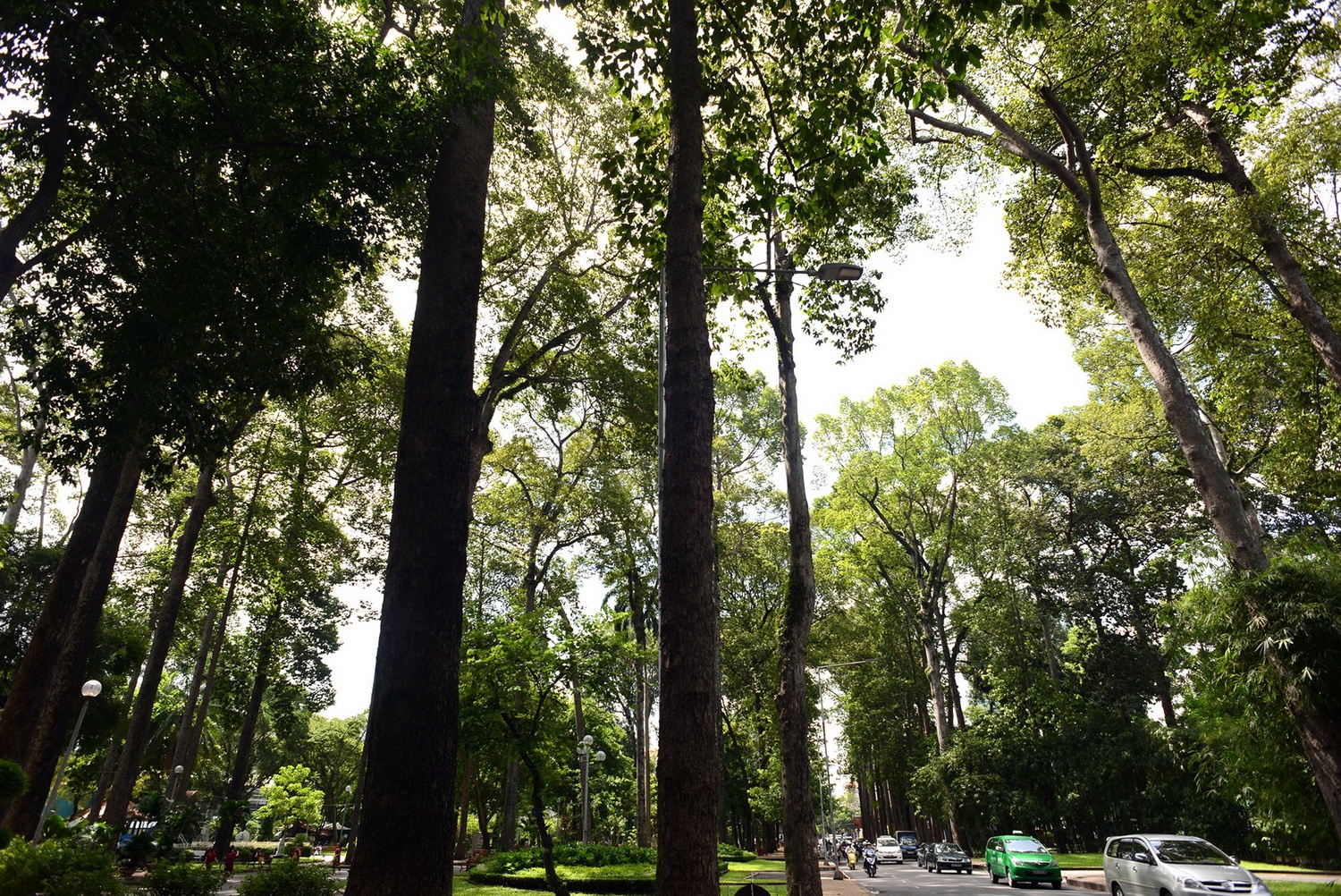 | Quá trình đô thị hóa khiến nhiều mảng xanh của TP.HCM phải nhường chỗ cho những công trình hiện đại, các tòa nhà cao tầng. Tuy vậy, trên nhiều tuyến phố, những hàng cổ thụ gần trăm năm đủ các loại vẫn tỏa bóng mát. |