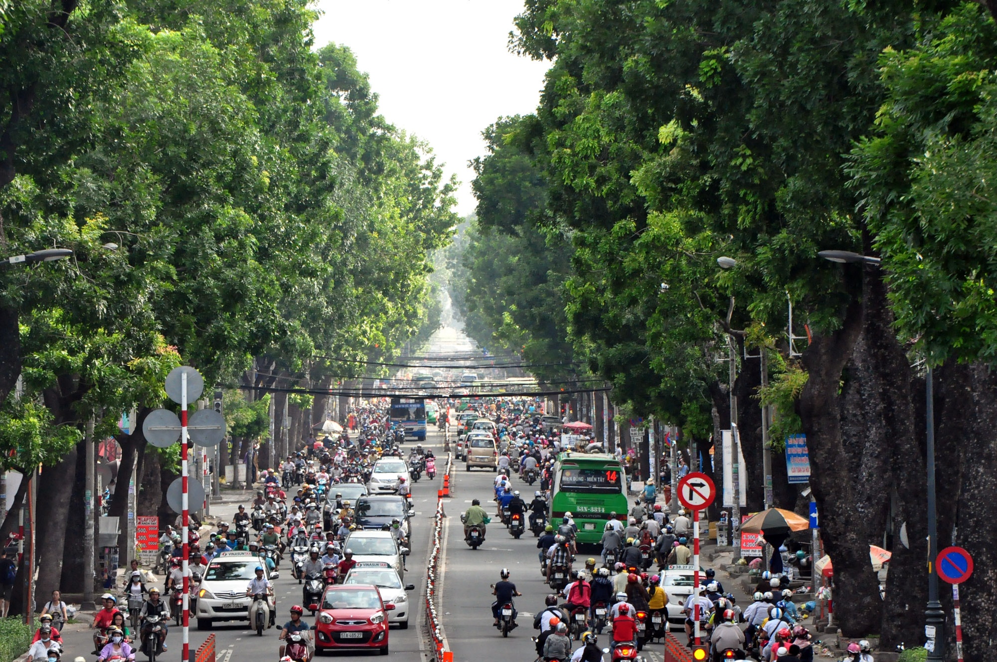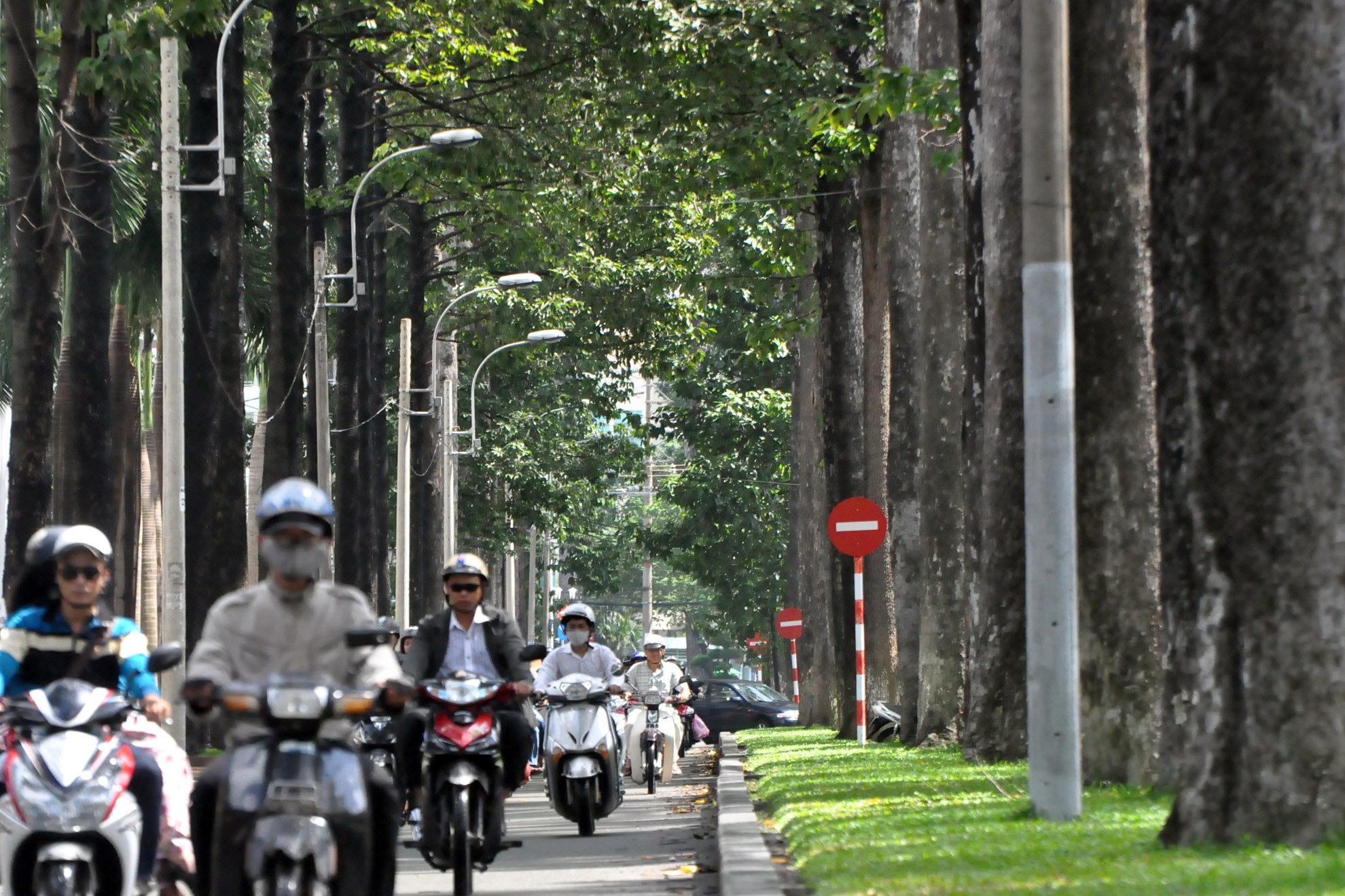| Đường Trương Định, quận 1, chạy xuyên qua "rừng cây" ở công viên Tao Đàn. |