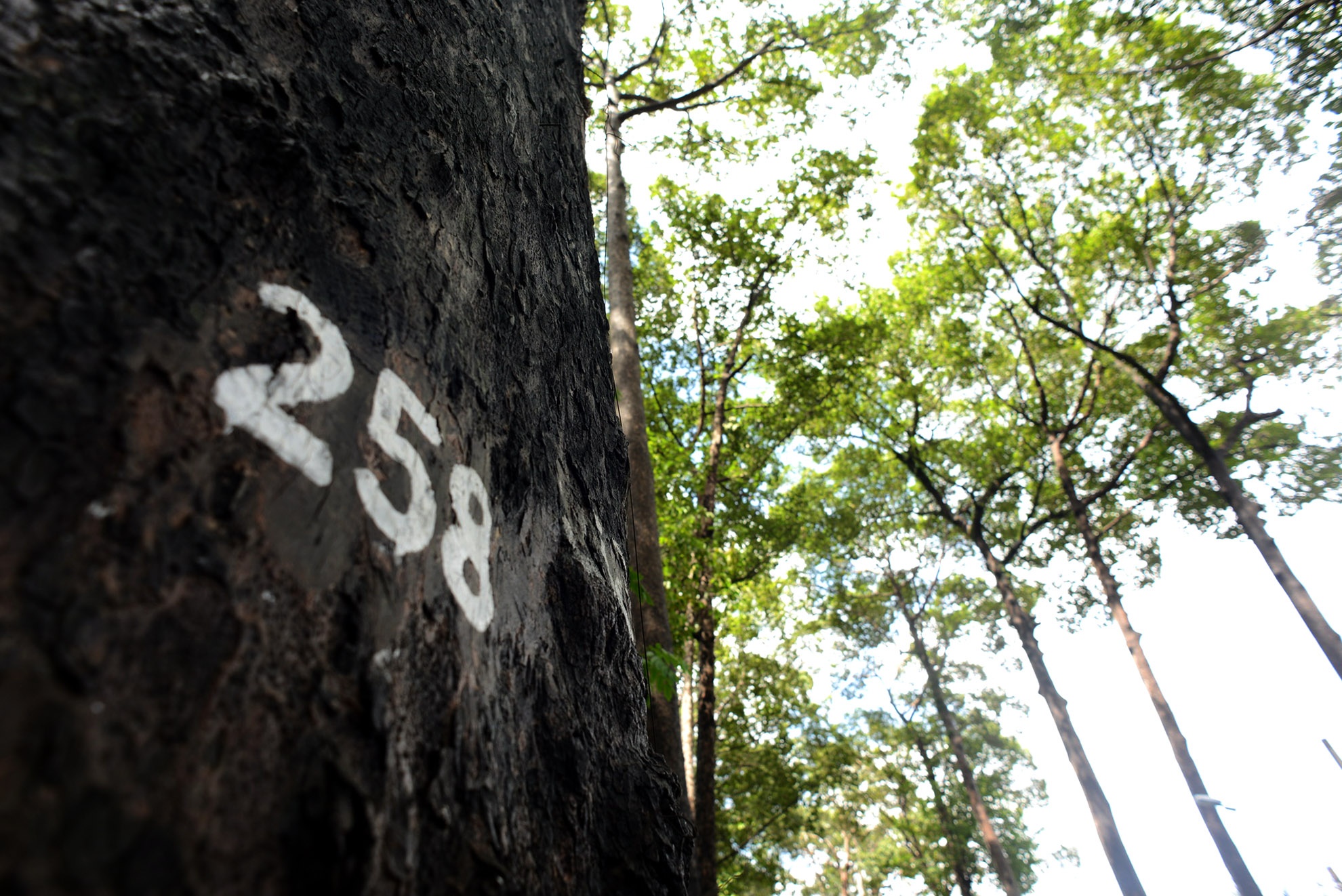 | Trên các con đường, bất kỳ cây lớn, nhỏ đều được công ty cây xanh đánh số thứ tự để theo dõi. Nhiều con đường có tới vài trăm cây lớn dọc hai bên. |
