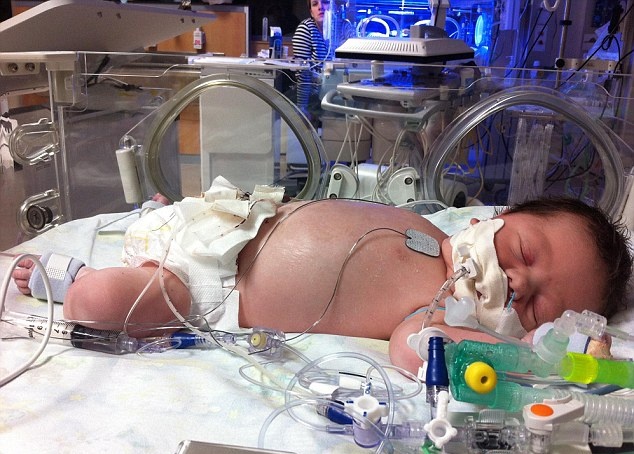 | Keira Robertson trải qua nhiều phẫu thuật đau đớn khi vừa cất tiếng khóc chào đời. Ảnh: Michael Traill. |