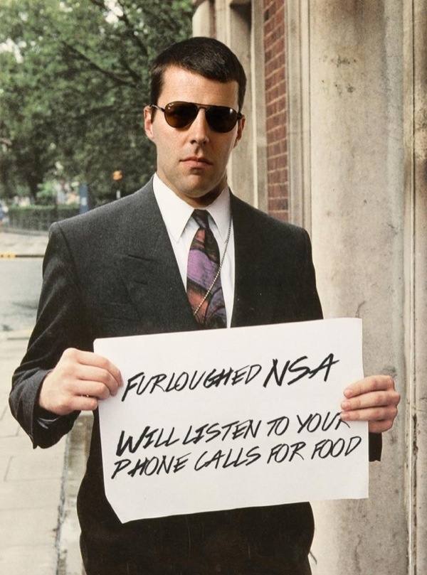 | 1. "Những nhân viên NSA nghỉ phép sẽ lắng nghe các cuộc gọi đặt đồ ăn của bạn". - Thông điệp chế giễu những nhân viên của Cơ quan an ninh quốc gia Mỹ khi họ không có kinh phí hoạt động. |