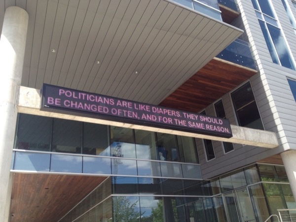 | 4. Một thông điệp gay gắt hơn được trưng lên ở Houston: "Giờ thì chúng ta đã biết tại sao một đàn khỉ mặt chó được gọi là quốc hội". |