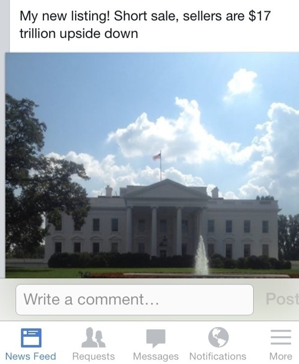 | 7. Độc đáo hơn, nhà trắng cũng được một "cò" bất động sản rao bán trên mạng với tiêu đề "Bán gấp!!!" |