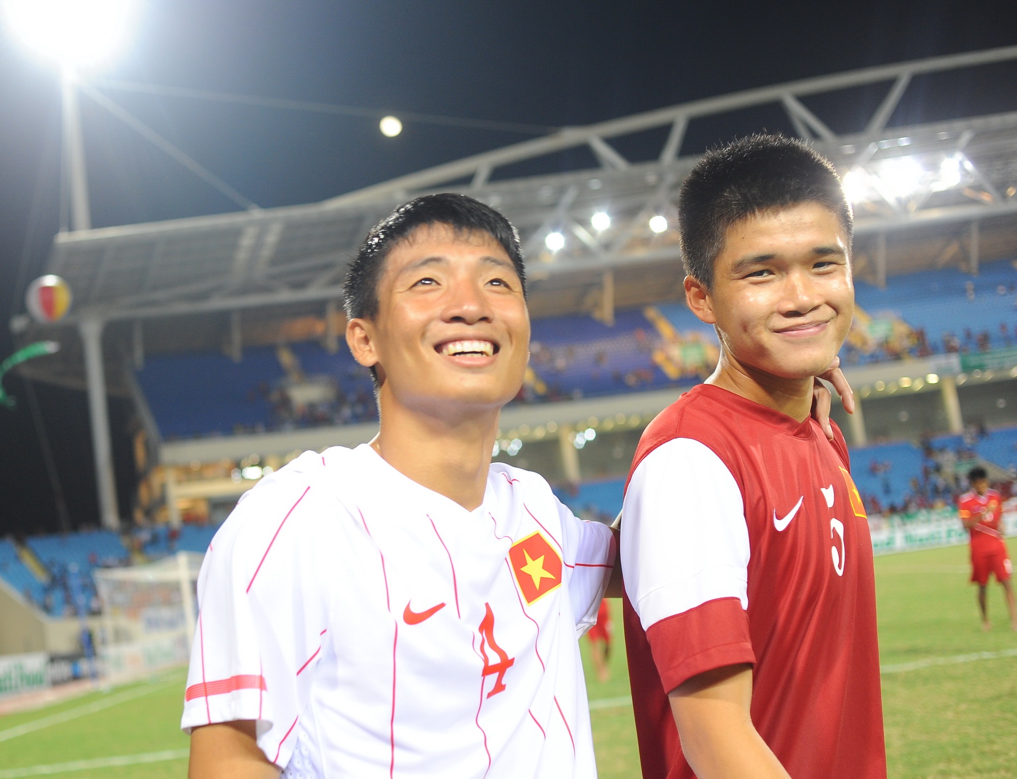 | Hoàng Thanh Tùng chạy tới hôn cậu em trai sau trận bán kết giải U19 Đông Nam Á 2014 - Cup NutiFood. |
