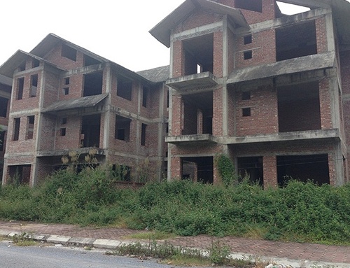 | Nhìn từ xa, khu biệt thự không khác gì một 'thành phố ma'. |