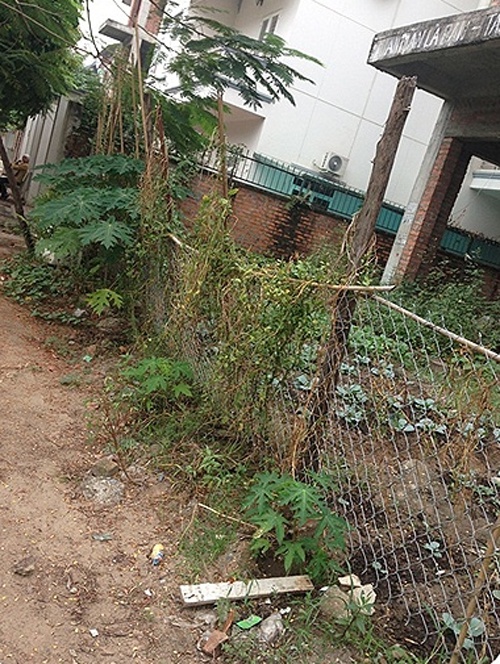 | Nhiều căn biệt thự tại đây do để không lâu ngày đã được người dân tận dụng quây lưới sắt để làm chuồng nuôi gà. |