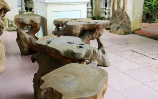 Bộ bàn ghế gồm 8 khối đá được phát hiện cùng một chỗ ở dưới lòng đất ở vùng núi Nghệ An. Niên đại của những mẫu vật này được cho là có thể đến hàng nghìn năm. |
