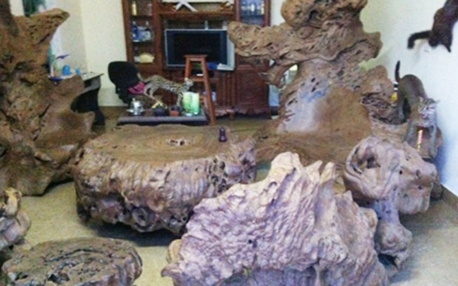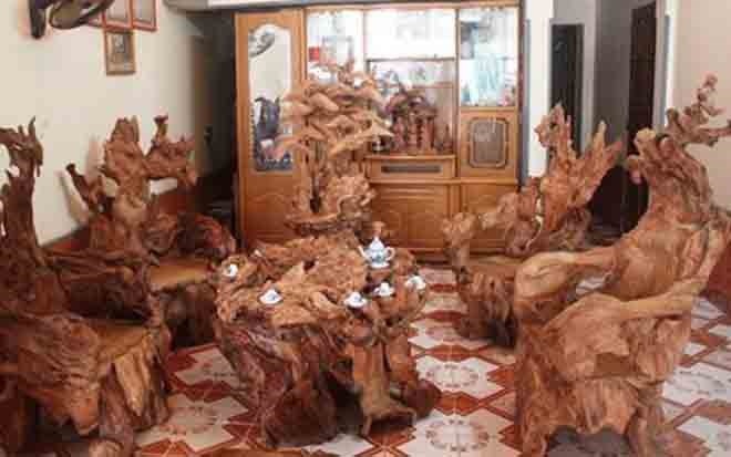 | Bộ bàn ghế làm từ gốc cổ thụ. |