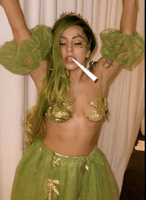 | Lady Gaga hóa thân thành Nữ hoàng Ganja để đón Halloween. Chỉ vài giờ sau khi đăng tải trên Twitter, bức ảnh này đã nhận được hàng triệu lượt like. |