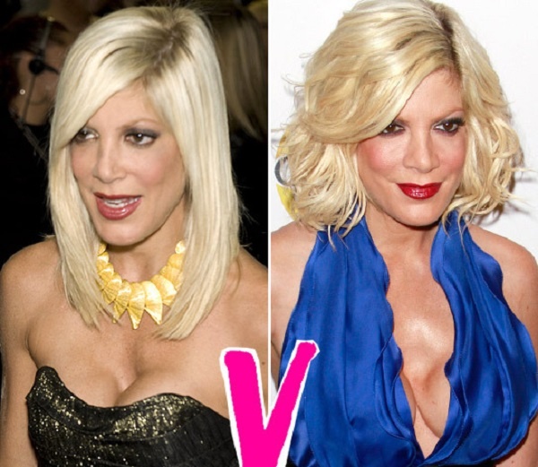 Tori Spelling: Bạn có thể nhận thấy phần ngực phía bên trái của Tori bị lõm xuống rõ rệt. Đó là kết quả của việc lạm dụng phẫu thuật, cấy ghép khiến cô phải sống chung với bộ ngực méo mó. Điều này khiến Tori luôn ân hận vì quyết định phẫu thuật. |