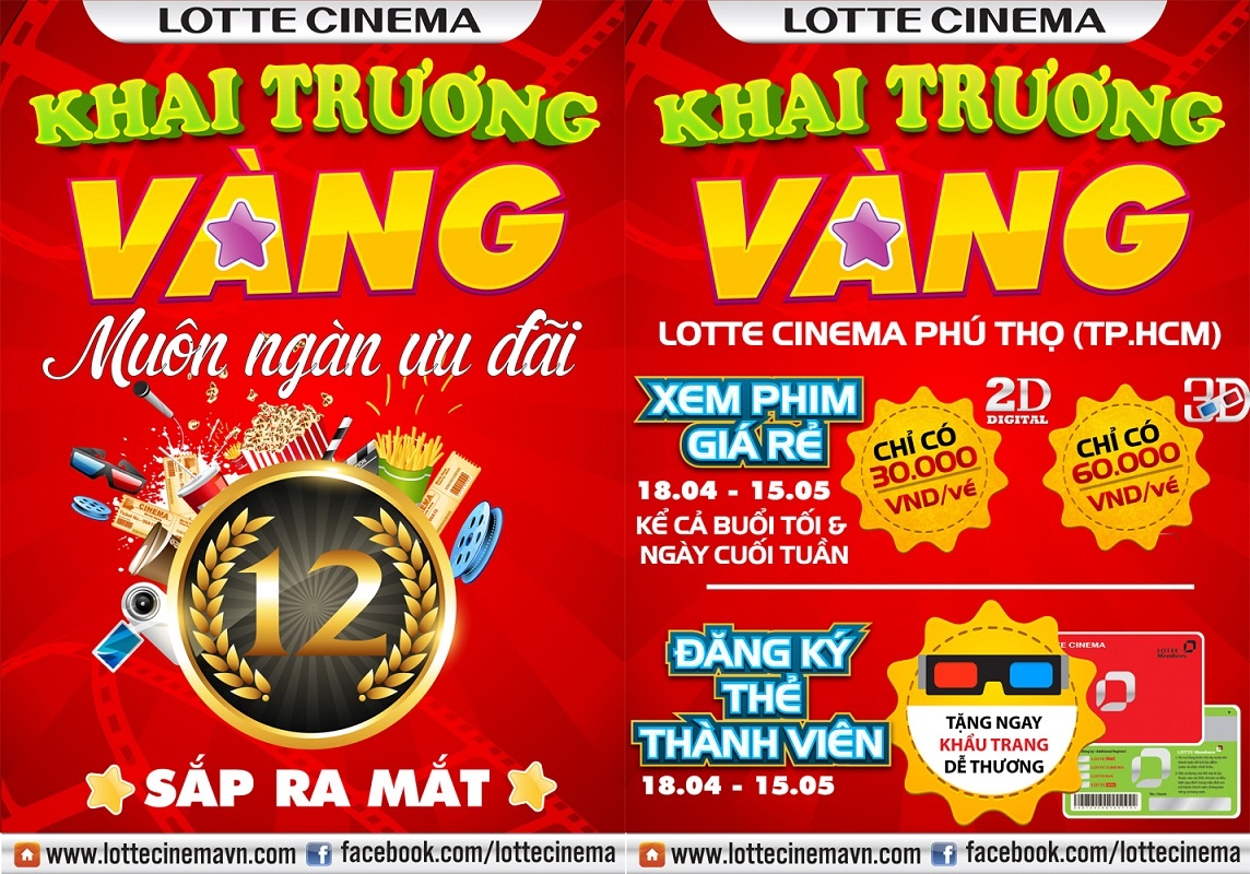 Lotte Cinema Phú Thọ dự kiến khai trương 18/4 với nhiều khuyến mãi. |
