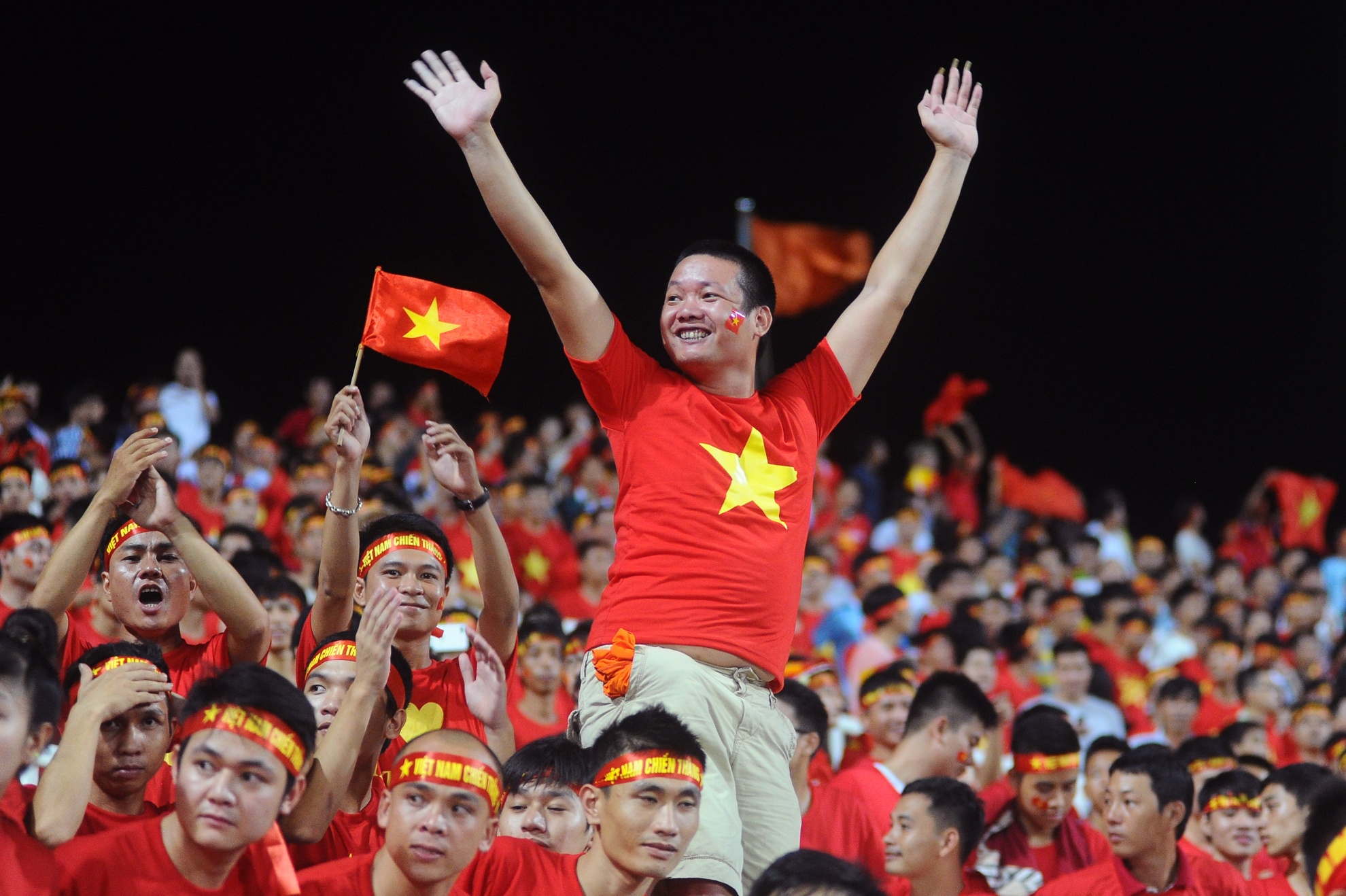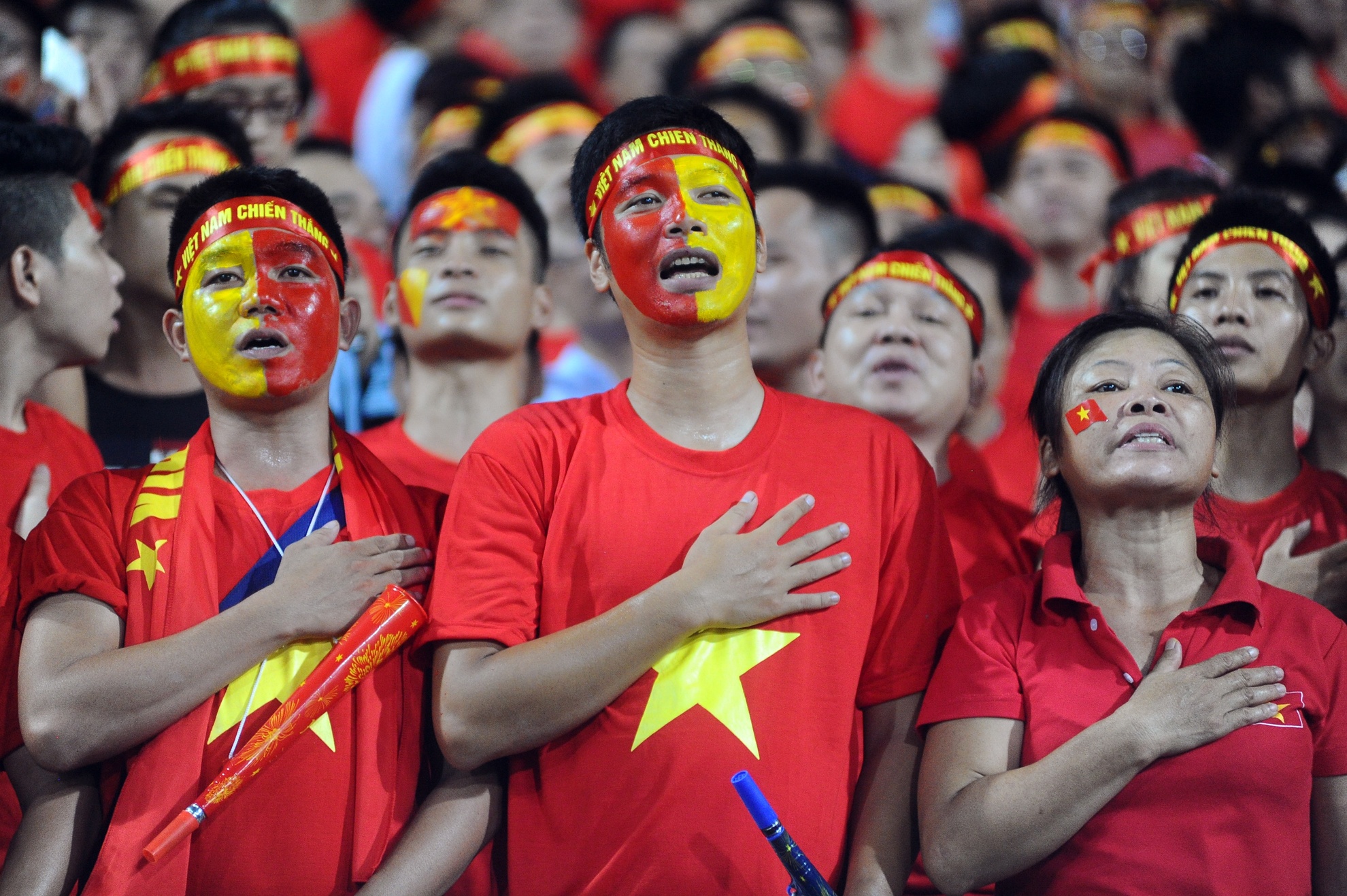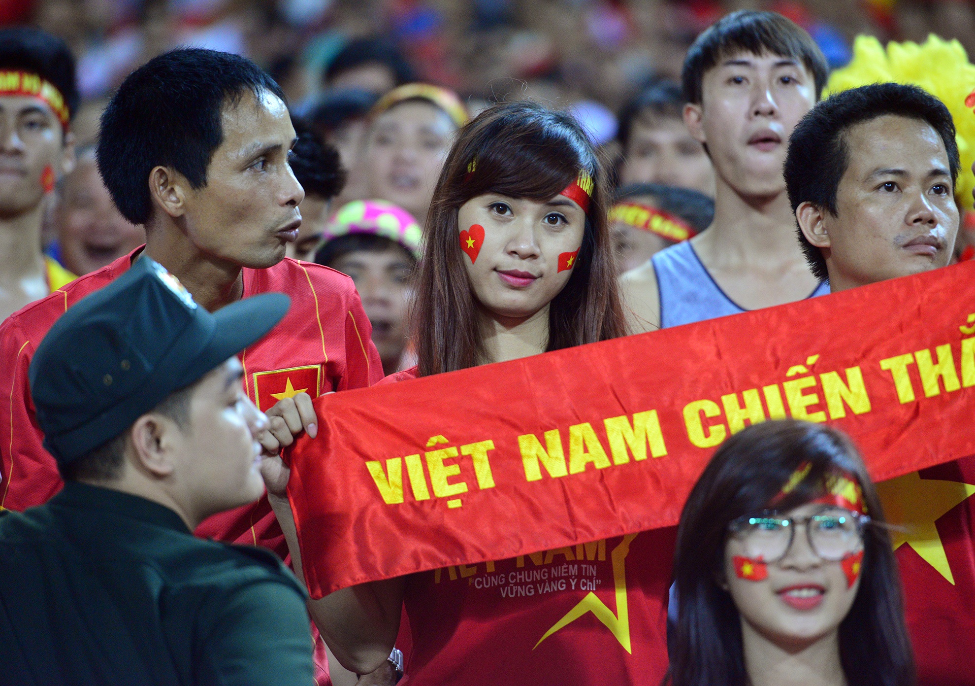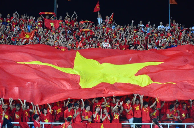 | Các CĐV thuộc VFS đem một chiếc cờ tổ quốc rất lớn tới để khích lệ tinh thần đội quân của HLV Graechen thi đấu vì màu cờ sắc áo. Ảnh: Lê Hiếu. |