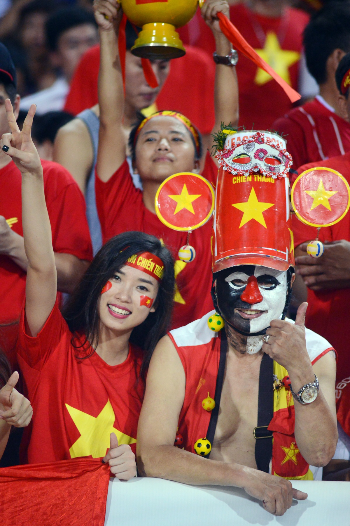Niềm vui của người hâm mộ khi đội nhà đòi nợ thành công trước U19 Myanmar. Ảnh: Tuấn Mark.