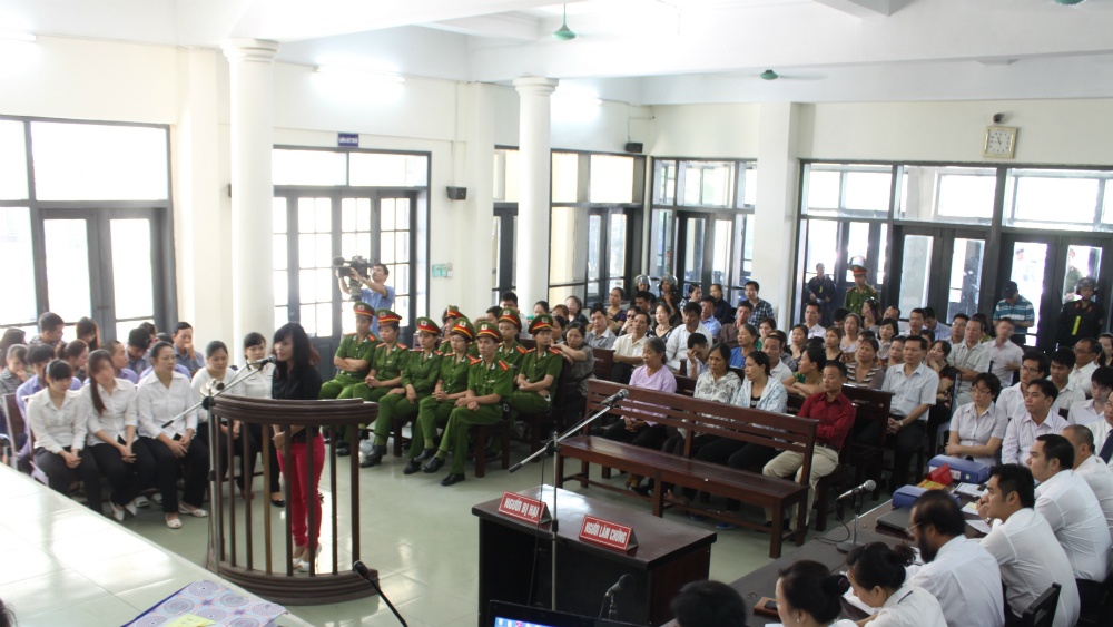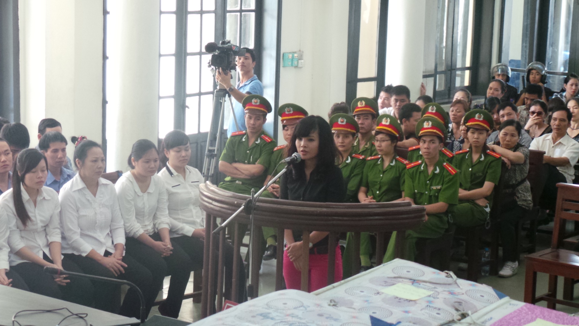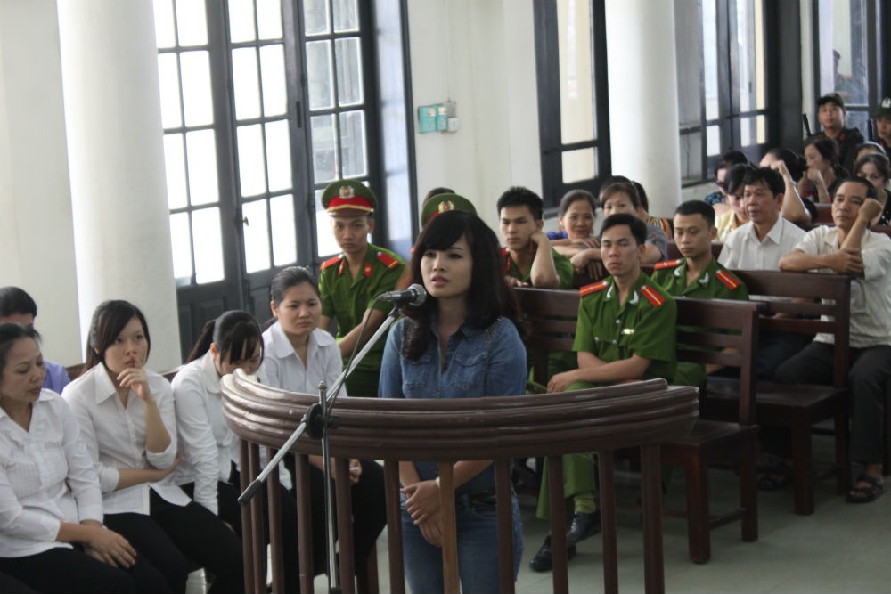 "Nữ quái" xinh đẹp Mai Ngọc Liên tại phiên tòa xét xử sơ thẩm của tòa án nhân dân tỉnh Quảng Ninh.