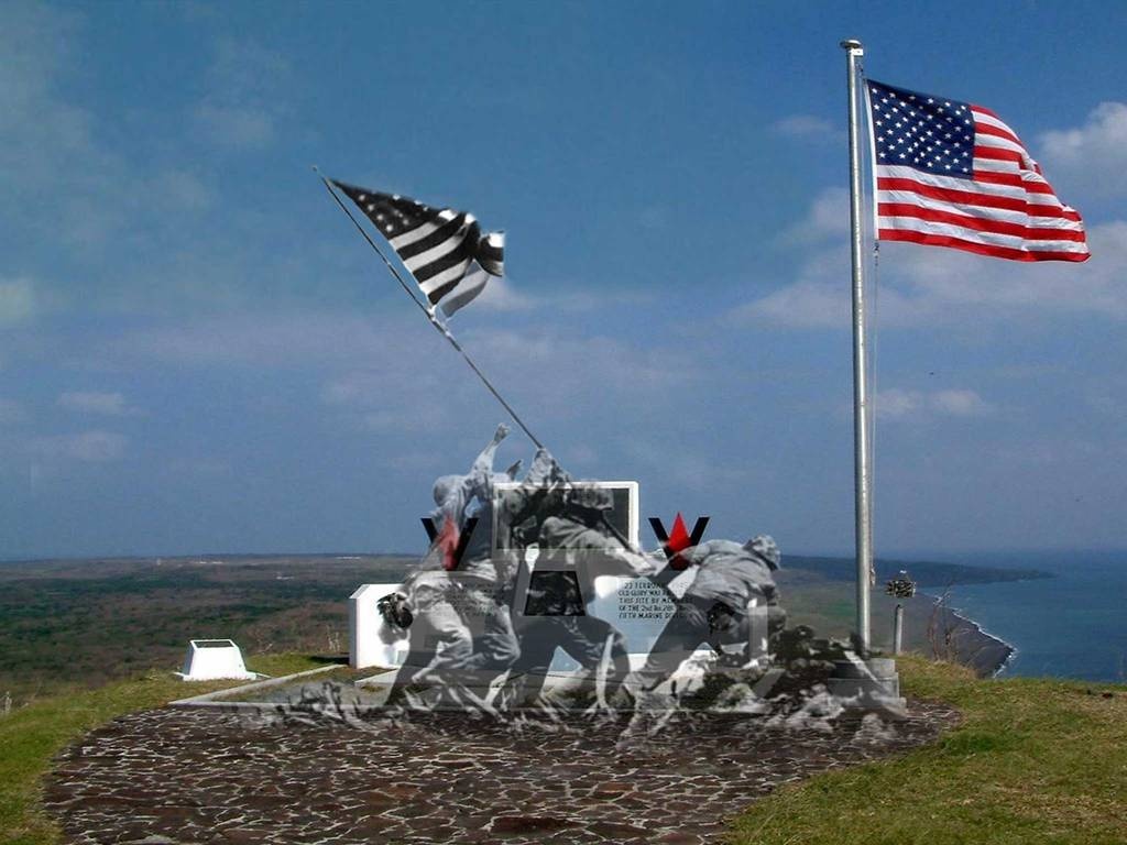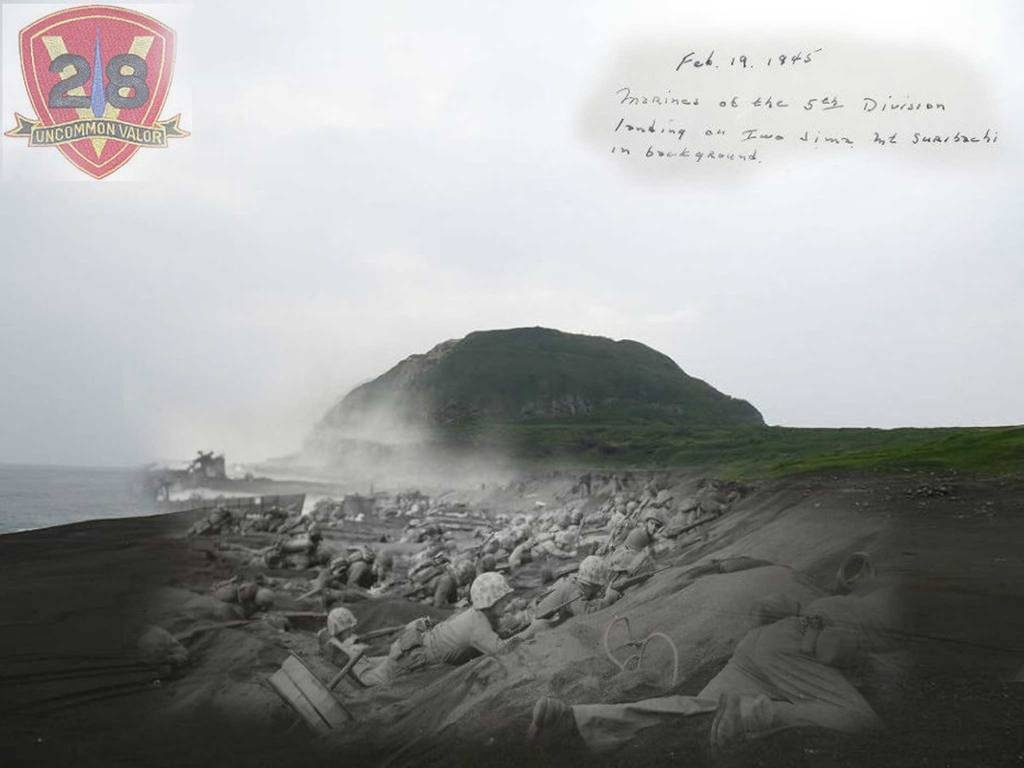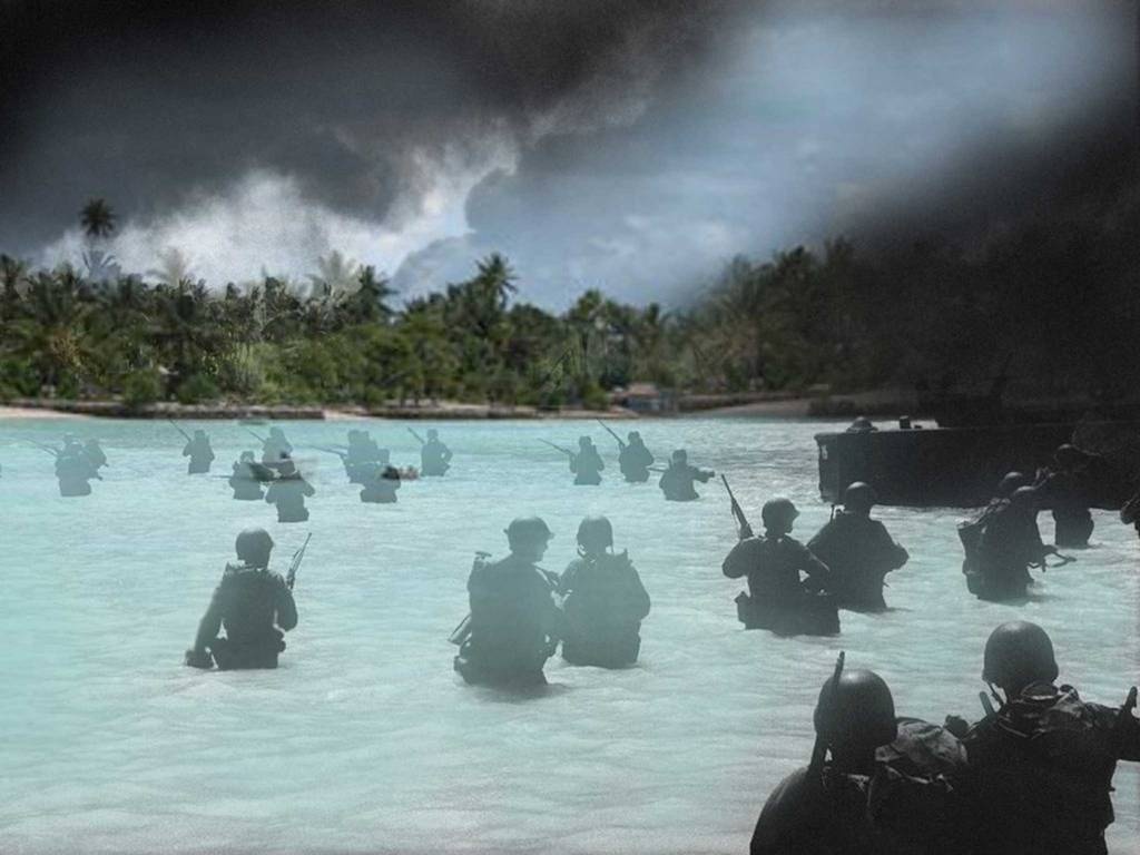 | Hình ảnh Hải quân Mỹ đổ bộ lên đảo Guadalcanal, phía tây nam Thái Bình Dương năm 1942 kết hợp trên nền bãi biển năm 2014. |