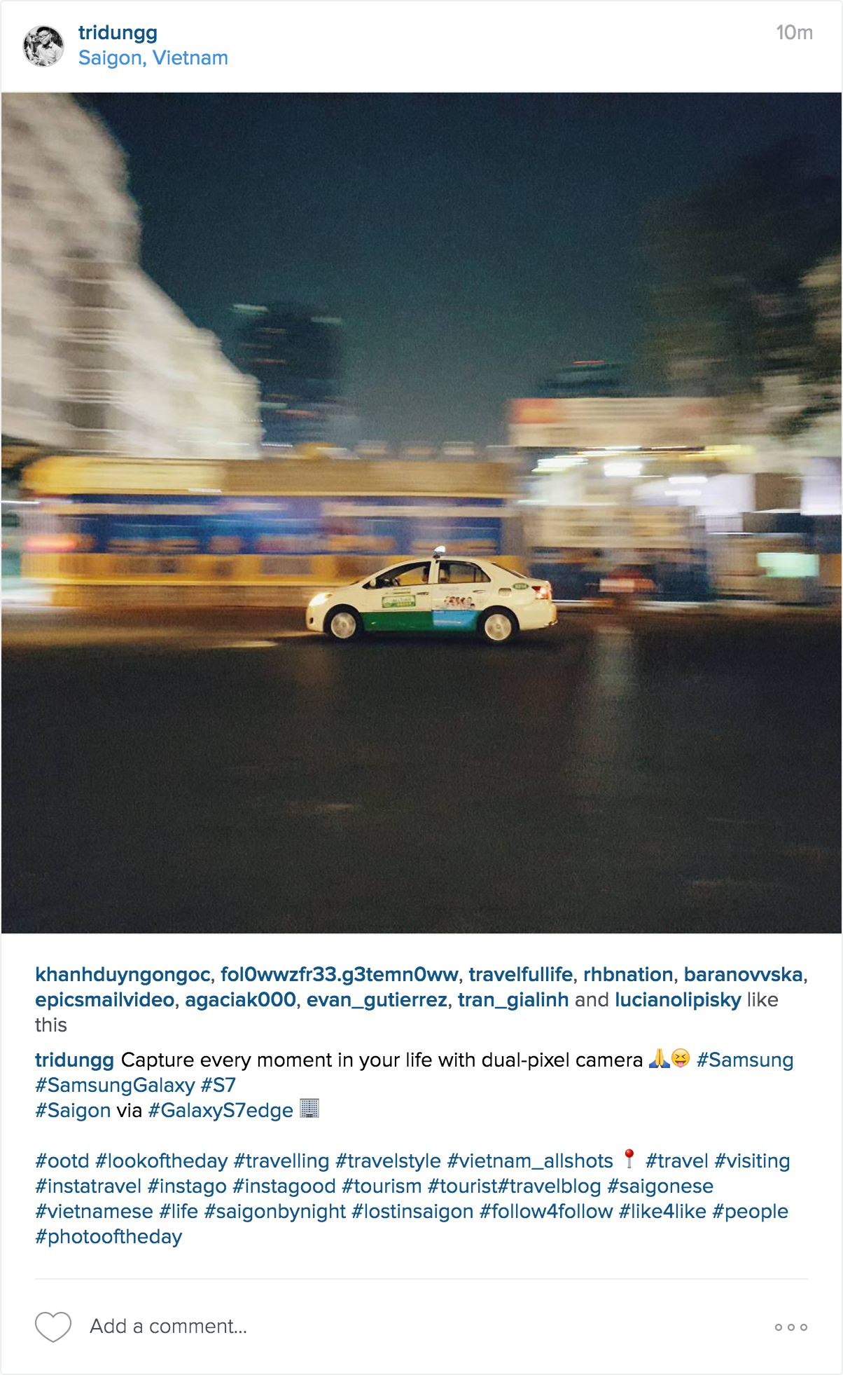 Ở môi trường thiếu sáng nhưng Galaxy S7 và Galaxy S7 edge vẫn có thể bắt dính chuyển động của taxi. |