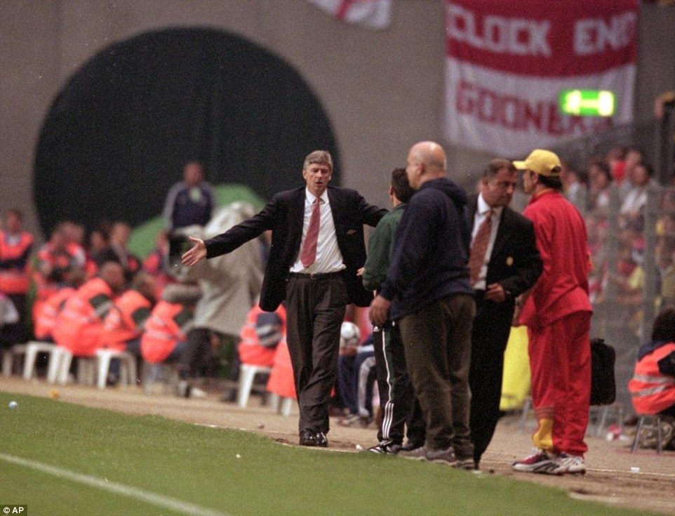 | Wenger không hài lòng với quyết định thổi phạt đền của trọng tài trong trận chung kết UEFA Cup với Galatasaray. |