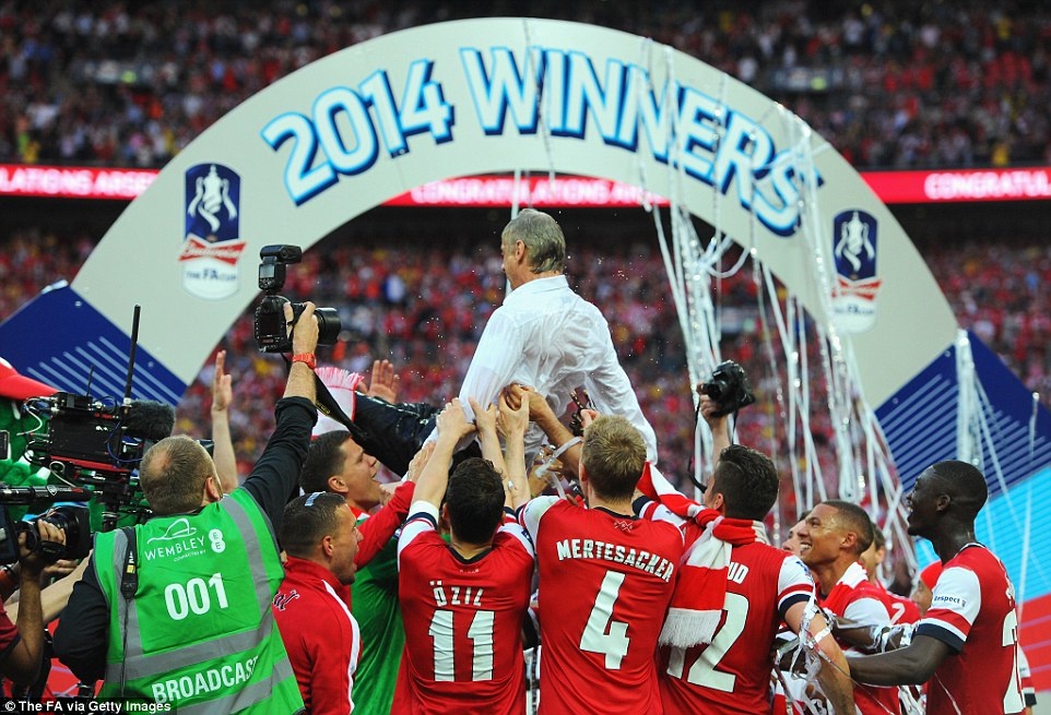 | Sau 9 mùa giải liên tiếp trắng tay, Arsenal của Wenger cuối cùng cũng có được danh hiệu đầu tiên khi ngược dòng hạ Hull City trong trận chung kết FA Cup 2014. |
