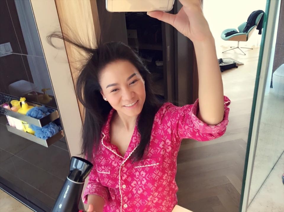 | Hình ảnh selfie "tóc gió thôi bay" của bà bầu Thu Minh khiến khán giả bật cười. |