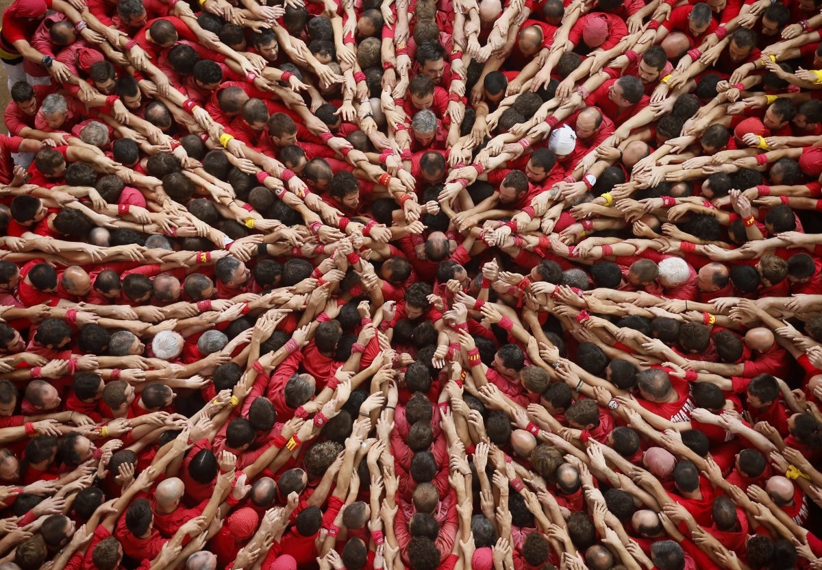 Người dân thành phố Tarragona (Bắc Tây Ban Nha) đang tạo ra một tháp người trong cuộc thi diễn ra 6 tháng một lần - một truyền thống có từ năm 1946 tại xứ Catalonia.