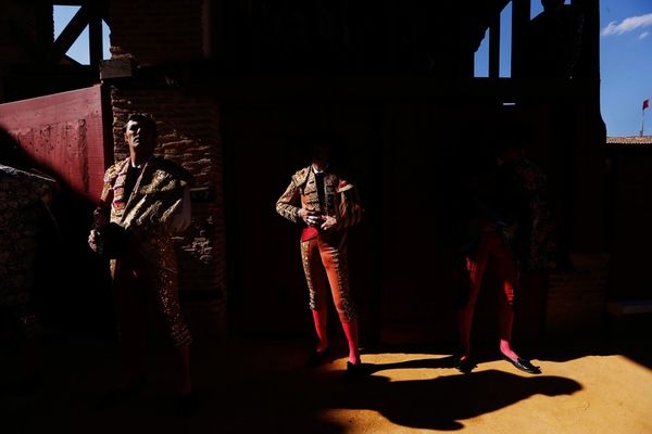 | Các đấu sĩ chờ đợi trước khi tham gia trận đấu bò tót ở Toro, Tây Ban Nha ngày 28/8. Ảnh: AP |
