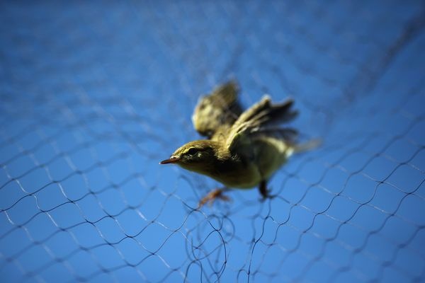 | Con chim chích mắc kẹt vào lưới ở khu bảo tồn tư nhân tại Rye, Anh. Ảnh: Getty Images |